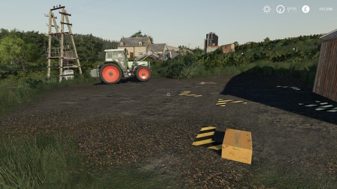 It’s late afternoon and there’s time to fill in with a job for someone else to earn some money on the side. There was a job to harvest a crop on another farm but it’s probably a bit late in the day to take that on as our harvester will need some maintenance on its header blades before we go again – repairs to equipment are important in the game and become necessary much sooner than in real life. I hope that the job will still be there in the morning. In the interim, there’s a delivery taking a small load from the Sawmill up to Hill Top Stores. That’s a job our newly acquired Fendt and trailer can do 🙂 So off to the Sawmill we go with our pallet forks attached…