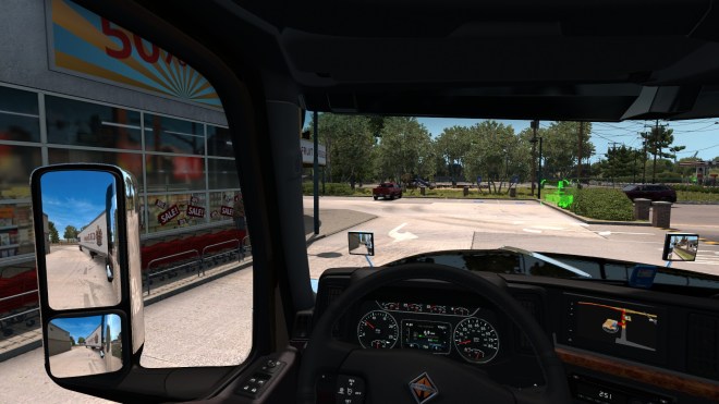 …I wasn’t sure that I would like it but as I tweeted; Not sure about the styling – guess it will grow on me… Love the dash… Dislike the mirrors for normal driving – but they’re good when parking… Which you can see from this in-cab shot during the above delivery to Eddy’s…