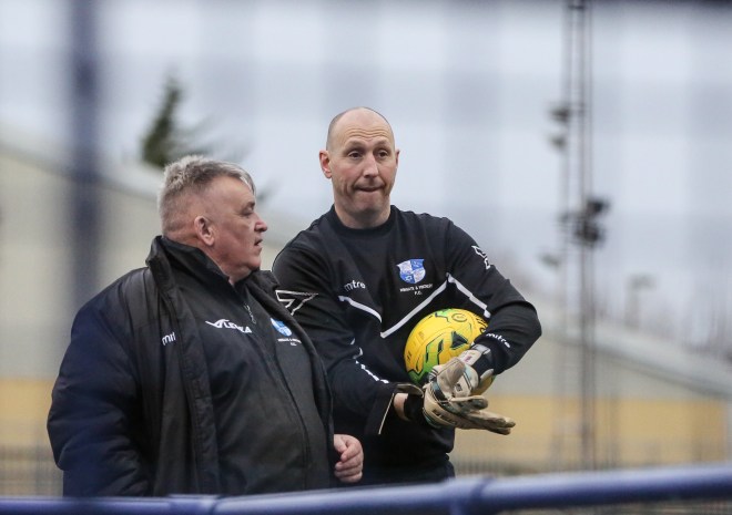 Getting down to business, Peter the Kitman and Gav, goalkeeping coach…