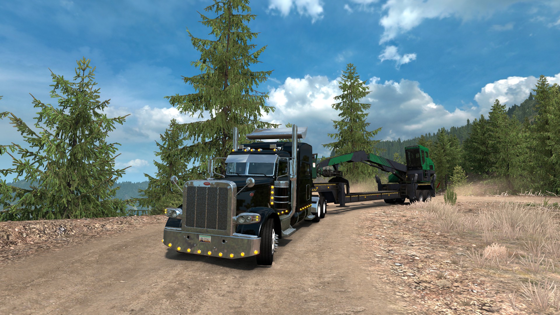 Other achievements included visits to all Oregon’s forestry sites, and shifting every type of forest machinery as well as visiting a lumber site outside Bellingham in Washington. Here we are coming back down the track from that one with a Knuckleboom Loader in tow…