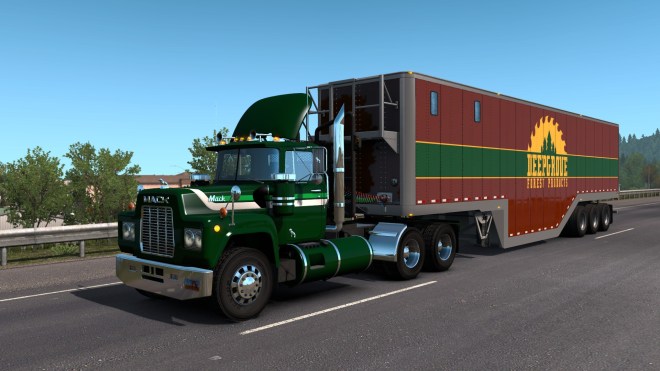 The jobs required for two achievements just wouldn’t fall for me. One required me to deliver a boat to one of the Washington shipyards. In the end I had to take a ‘Hire job’ and wound up driving this ‘Varicose’ blue Mack R from Holbrook to Port Angeles…