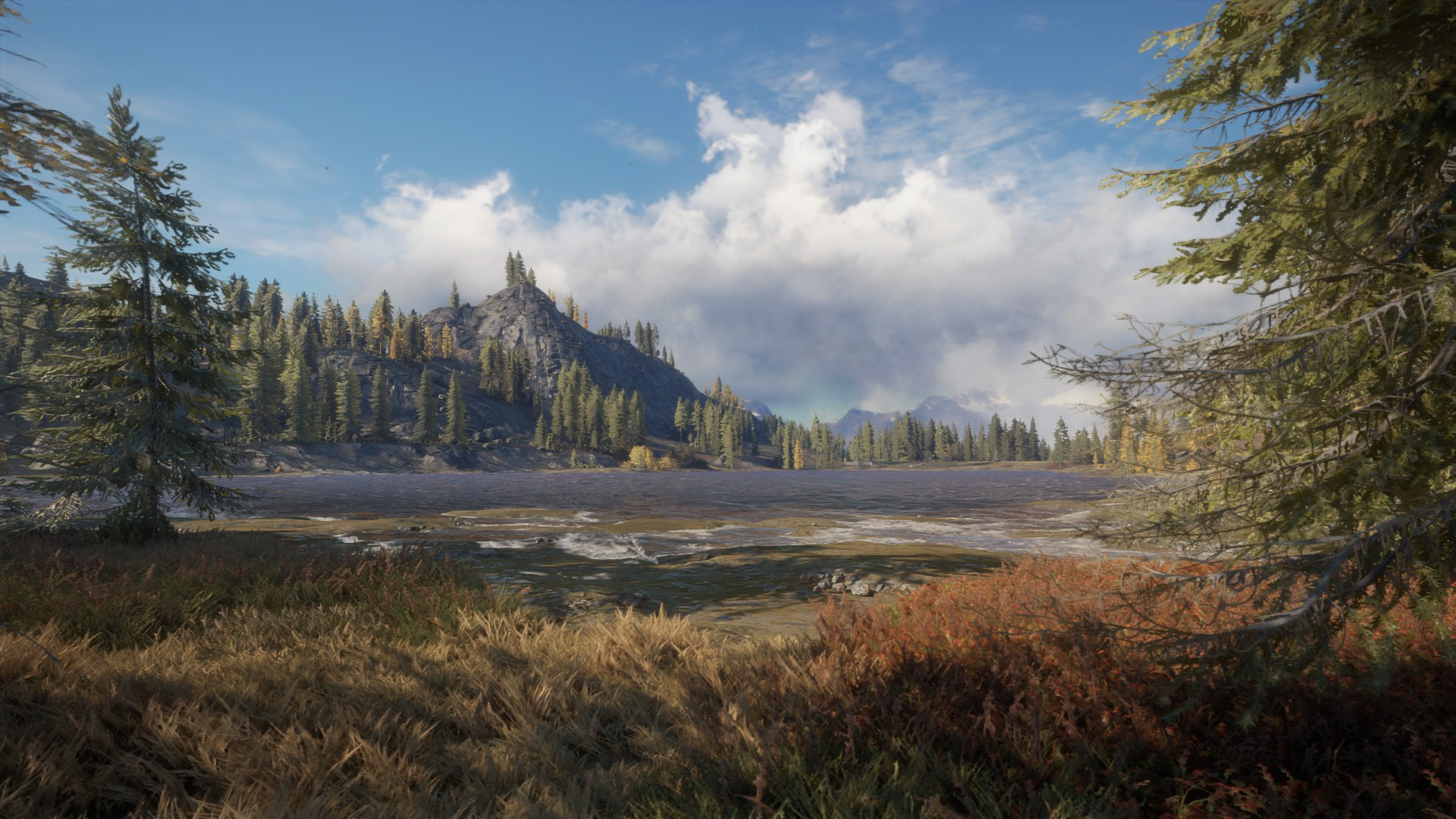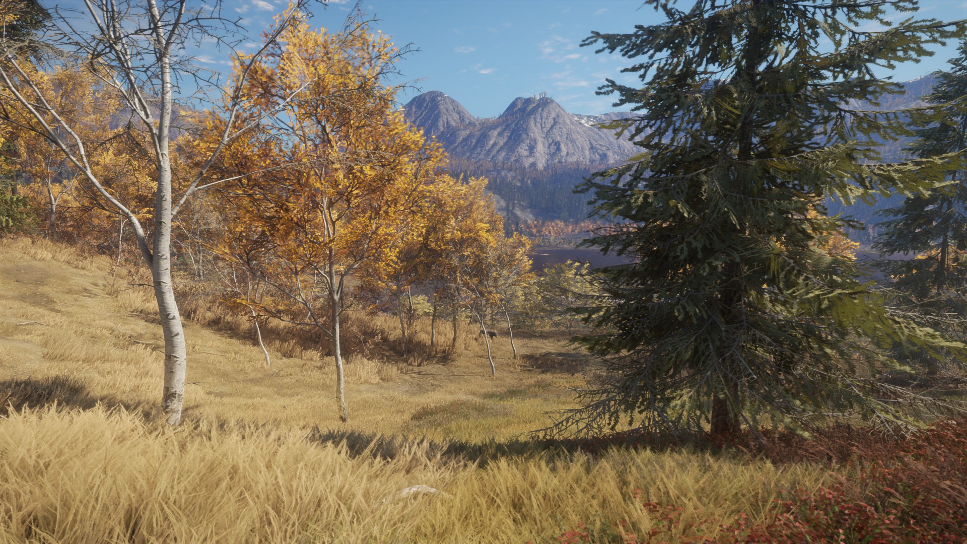 Another gun that is impacted by the changes is the 7.62mm Solokhin – once the darling of just about everyone. Its ammo class was moved from 2 to 6, where it sat alongside and outclassed the .243, to 3 to 7. With the .243 now being more effective and other very potent rifles such as the Eckers .30-06 now usable for animals of level 4 and above, there really is no reason to carry it. So Fox, Coyote, Roe, Springbok are all covered by the .243 and I can start shooting reltively small deer like Fallow, Blacktail and Kudu with the very powerful Regent Magnum 7mm or the Eckers or one of the newer guns in the game, which I’ll talk about in some detail in another post. The only reason to carry the Solokhin now is because you love it! Lets have another scenery break – this time in Layton Lakes, Oregon. If you look closely you can see a Black Bear wandering through the reserve…