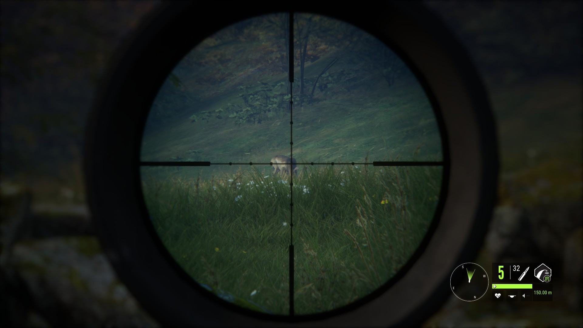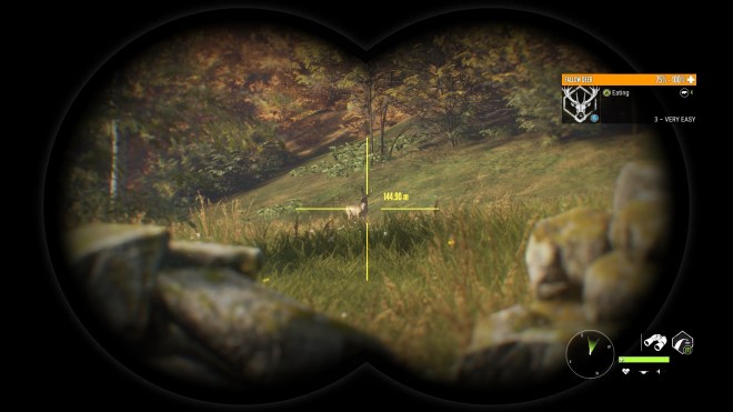 Let’s talk about the way that the scoring system changes have impacted the game. No one likes taking a bad shot – lets get that stated at the start. The old system penalised bad shots by downgrading your trophy if the animal took more than 8 seconds to die. Unfortunately, it was quite possible to do a good shot on an animal with a legitimate lower powered weapon which ultimately killed it, and still fall foul of that arbitrary mechanism. The new scoring system has removed the Quick Kill element from the Trophy rating of an animal that you kill. Instead, there are 4 checks that you must comply with to get the full trophy for the animal. Use of correct ammo class – using a level 4 gun like the Eckers on a Roe deer which is Level 3 will cause this to fail. Shooting the animal more than twice – there’s no machine guns in game but this is to deter the wild and reckless type of shooting. No damage to the parts that constitute the ‘Trophy’ element of the animal – usually the head. And, most importantly, the animal must have been hit in vital organs which are Heart, Lungs and Liver. Stomach, intestines and spine do not count but a shot that breaks the animal’s neck does. Effectively, this is the check that replaces the old Integrity and forces the player to put every effort into making a good shot. Let’s look at that in practice. Here’s a volunteer Fallow Deer…