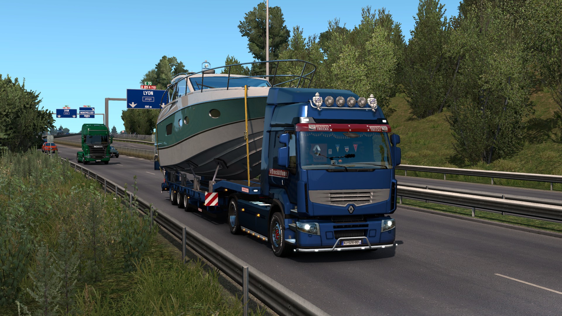 One of my younger trucking colleagues from Serbia has been asking me to get a Renault Premium – apparently that’s his favourite because they’re rare in his country… Np, Happy to oblige – here’s a Renault Premium in the standard blue of the special paint job released for the event by SCS.