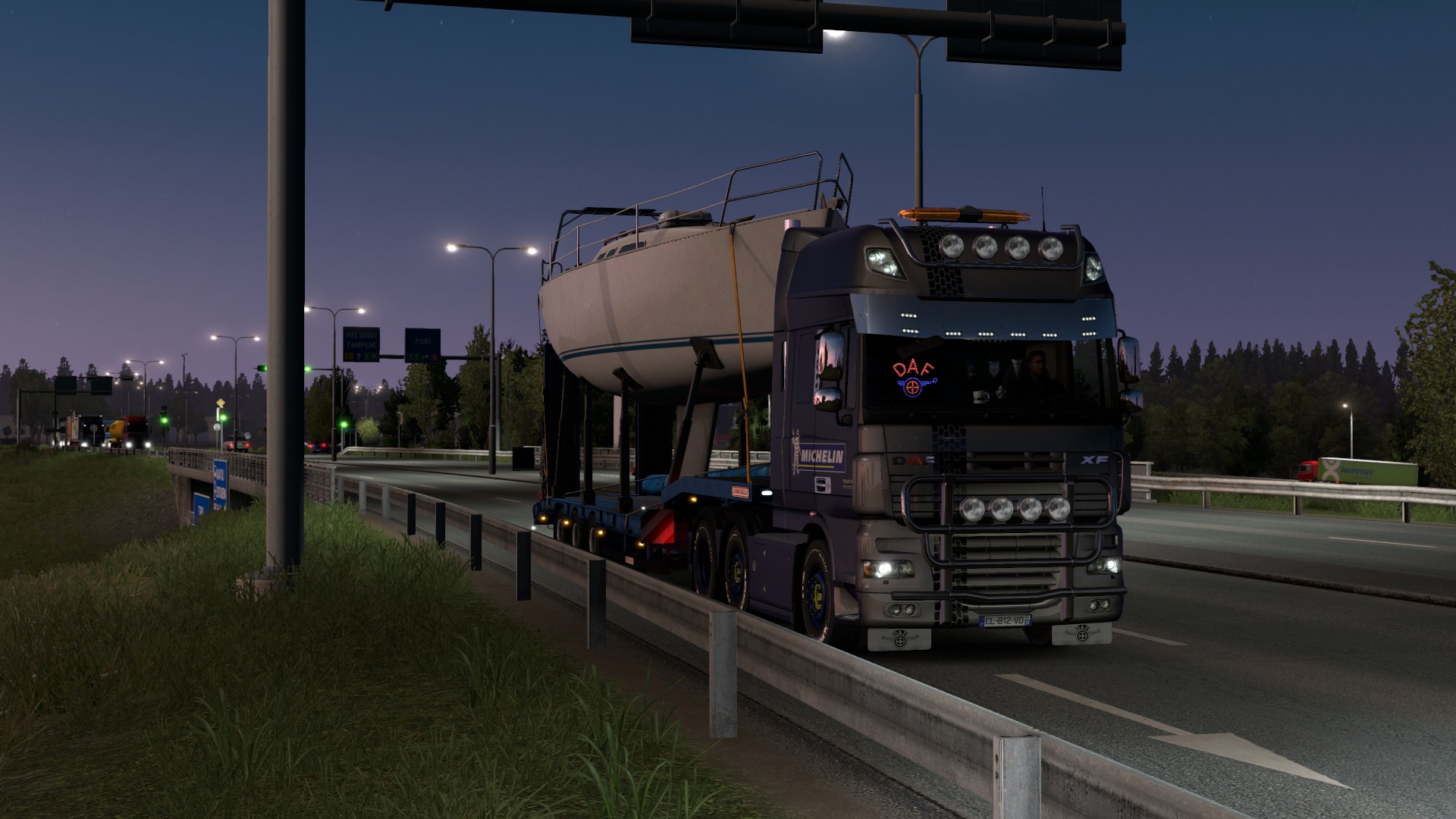 The other achievements I can actively work towards are slowly dropping into place. I’ve been utilising a DAF XF105 finished in Michelin colours for some of these. Here she is delivering a Yacht from Turku to Oslo to complete the Sailor Achievement…