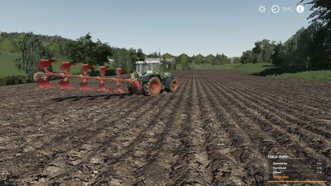 This morning I went seeking the relevant trailer mod in the mods section of the game and I also downloaded some updates to other installed mods. I also bought a DLC for Anderson equipment which had some alternative options for the baling issue. When I tried to save the game not long after that, it just hung 😦 Eventually, after waiting some minutes, I had to resort to the windows key and a stop command on the Steam site. When I logged back in to the game, my Oak Glen Farm save was gone. A really annoying outcome given that my first crop was now growing 😦 For some players of games something like this is a cue to rage-quit, throw the controller across the room or abuse the family cat. For me it’s an opportunity to rerun the things I had done and perhaps do a better job second time around. So here we go, same farm and same first field.