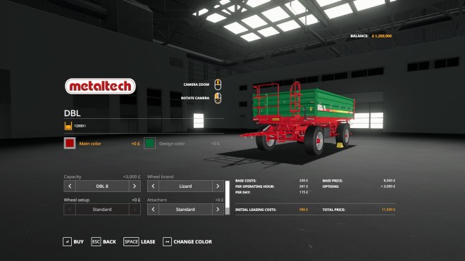 Next, I bought a trailer and pallet forks. I’ll need the trailer for when I harvest my crop but in the mean time I can use it to do some transport work. I chose to buy the MetalTech DBL8 trailer, which is one from the modhub…