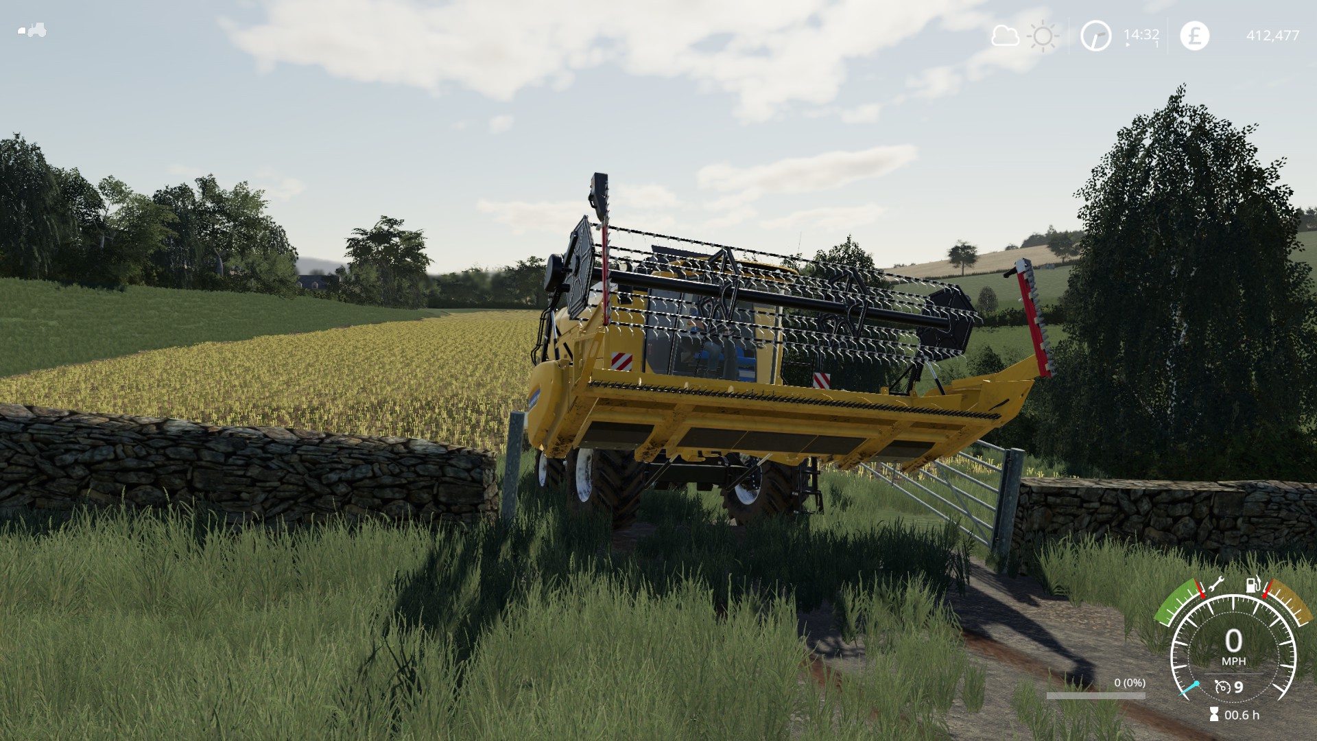 Harvesting done it’s time to take the TC5.90 home to the farm – it’s a tight fit through the gate of the field with the header fitted…