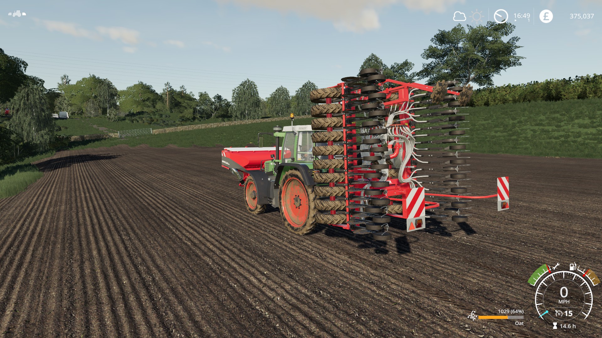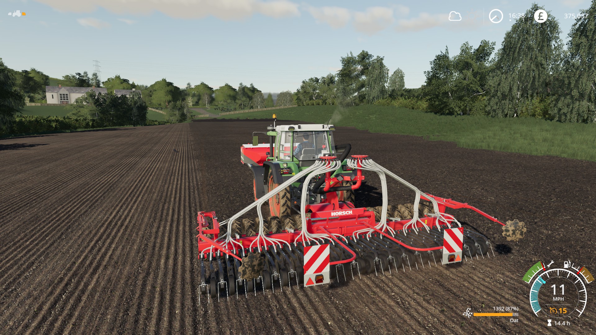 I got talking to one of the other farmers at the roadside cafe (translation – watching play-through videos on YouTube) and he suggested that I might find a different seeder better for my situation than the Stara Ceres. After all, I’m harrowing the field and fertilizing it with other equipment anyway so I’m not really using the Ceres’ 3-in-1 capability. A different option would be one of the Horsch, Kuhn or Vaderstad range. I’d get a wider sowing track and an easier vehicle to line up for each pass. I took that idea on-board and that’s yet another decision to be made before choosing our next crop.