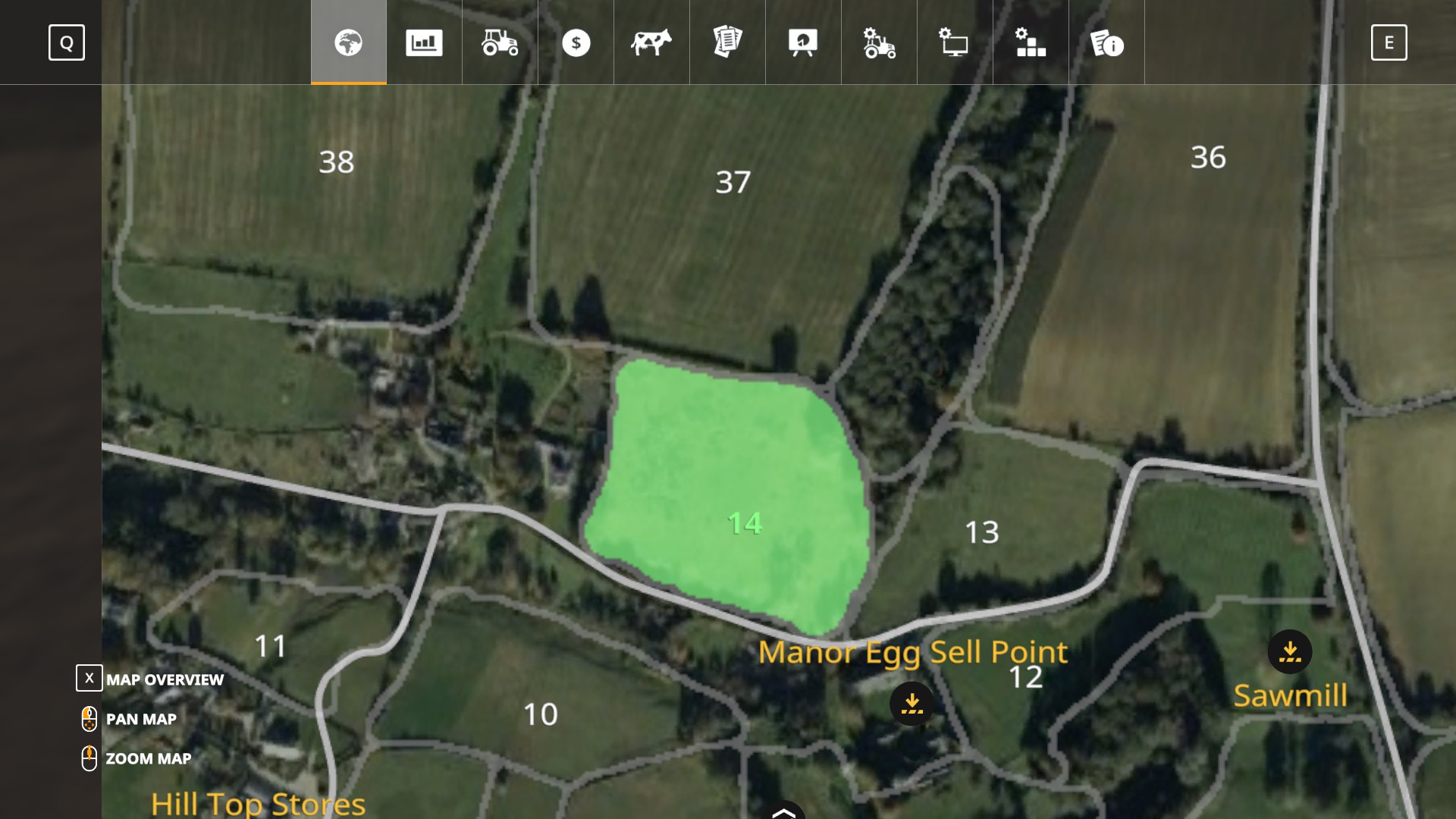 I was supposed to be taking a break but an after dinner check on my field of oats showed a ‘wonderful’ growth of wild flowers. So it was back out there with the sprayer set to exterminate! Quite why flowers can’t just stick to the hedgerows I don’t know! While doing that task I got to thinking. Sometimes when playing Farming Simulator there comes a tipping point – a moment when you realise it is time to make that purchase that will move your farm on to the next level despite initial misgivings about the cost. Because I’ve been so frugal in the early stages, I have a healthy £366k in the bank. £250k of that is a loan that I currently pay £1400 interest on each day and will need to pay back. With my first field now producing regularly and my basic machinery in place, I had another look at other fields available for me to purchase.
