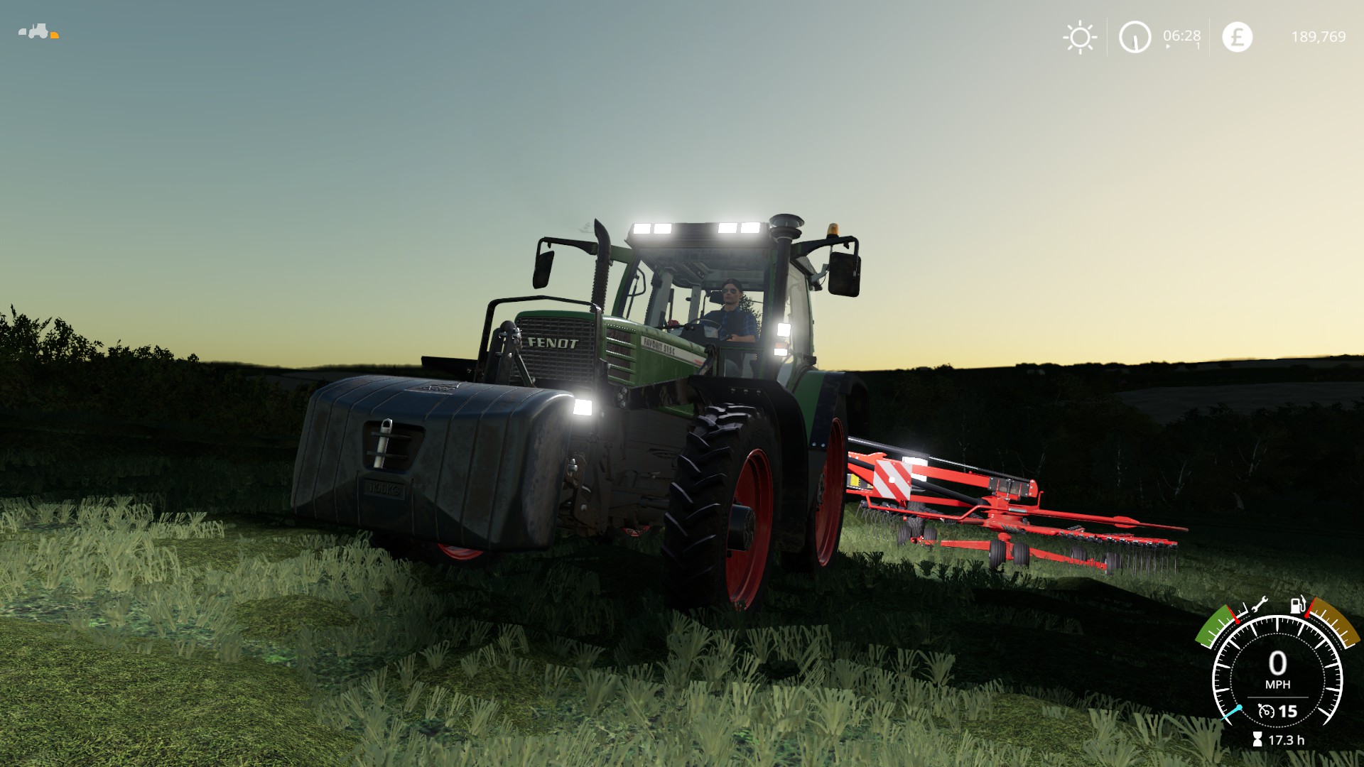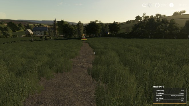 …with Coberley church on the horizon. Currently the whole field is under grass which is ready to harvest. I’ll mow that, which is why I’ve got the Pottinger’s fitted. That will be a long job and I will probably need to leave the windrowing and baling until the morning. I plan to store those silage bales with the others until prices improve again. Then, I will plough the area to the right of the track, creating a new crop field which should be similar in size to my current field. The rest of the field to the left of the track may stay under grass but I have yet to decide on how I will progress that – it could make a good crop field too. As I noted earlier, there’s currently too much grass being produced in this area at present for us all to make a profit.