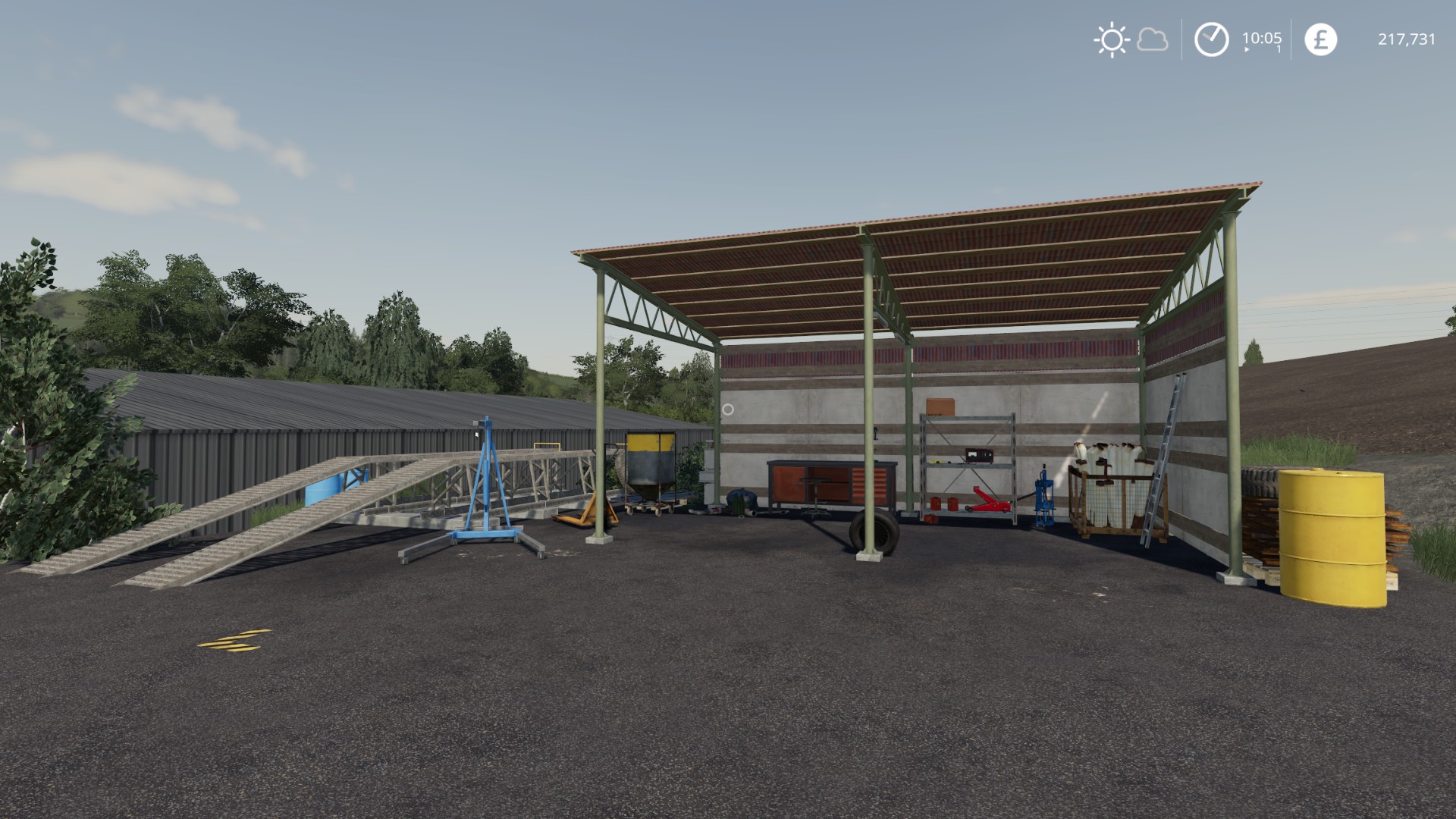 …A quick note on adding buildings to farms. The price of the building is quoted at the shop – In this case £7500. But there is a hidden cost that can really hurt you financially. When you place the building, any terraforming required to smooth the land where the building is going will be charged to you as construction costs and on bumpy terrain they can be eye-wateringly high. I had two possible locations for the placement of my workshop and this was the flatter of the two. Even so, the terraforming added nearly £1200 to the cost. If I was building a sheep facility in field 4, which is definitely not flat!, I might well find the cost of the work exceeding the cost of the facility itself and by quite a large margin. It would be nice if the game told you how much cost you are going to incur, but it doesn’t. So, be careful where you place your buildings!