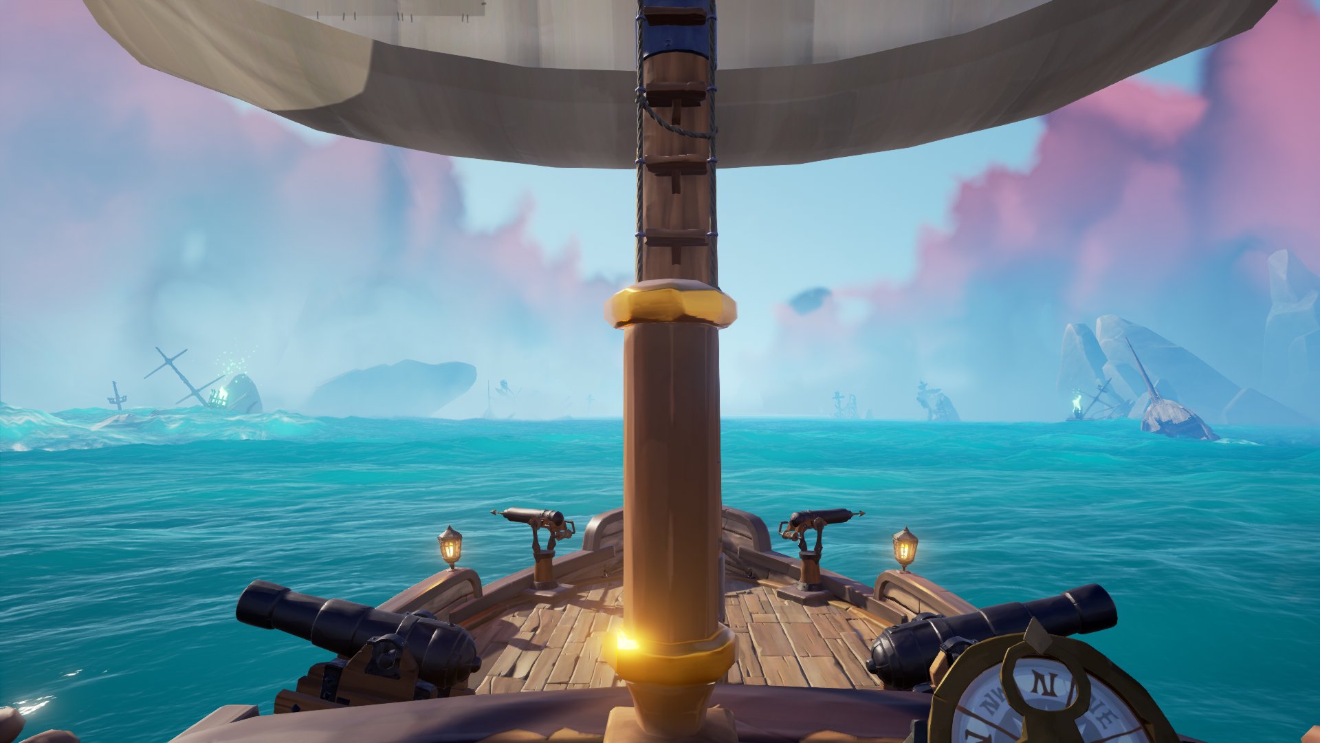 There’s a steep learning curve from a muscle memory/controls point of view. Some of the keyboard controls feel very odd to me coming into the game from The Hunter COTW, for example, and I’m having some serious adaptation issues currently. However, it will come with practise. You start out somewhere off the map and get basic guidance from a long dead Sea Captain by doing the Maiden Voyage. The emphasis is on the basic. It’s clear that the developers, Rare, along with Microsoft, want you to find your own way in the game including learning how to employ the tools that you’ve been given. After the short tutorial which really teaches little, you are sent on your way through the portal to the main map…