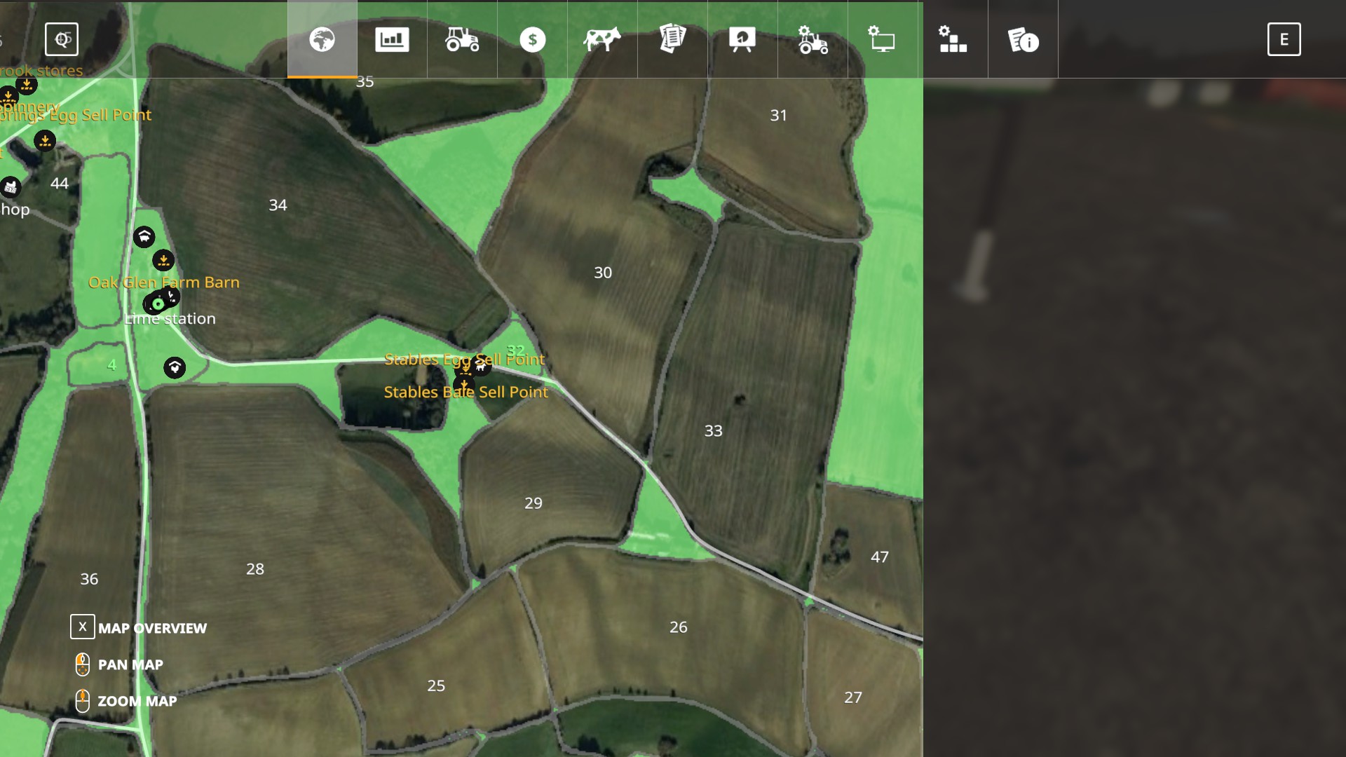 The voracious appetite of the pigs (I have 12 of them now!) has raised the question of how I’m going to make a money from crops when they are consuming quite a high percentage of anything I grow other than Oats and Grass. I think that the time is upon us to buy another, larger field. The only problem with that is the cost. Almost all of the fields that are under cultivation at my end of the map cost in excess of £300k. While I was harvesting the crop in field 27 I took a look at field 47 opposite. You can see both on the right of the map…