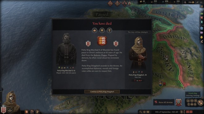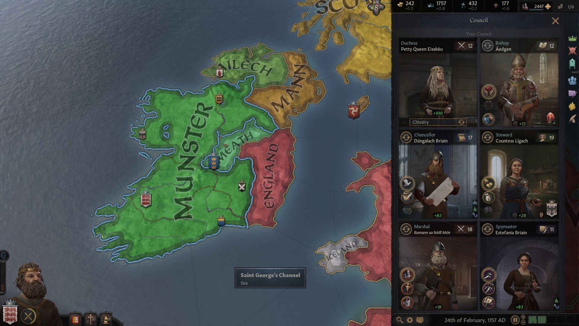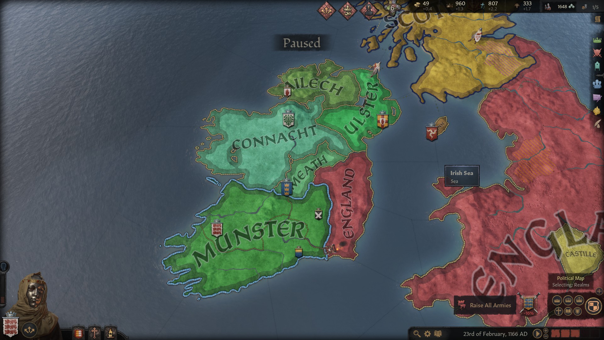 …Unfortunately, my passing left my Son with a slightly fragmented kingdom as Countess Ligeach of Connacht – the last Steward on my Council – ceased to be my vassel…