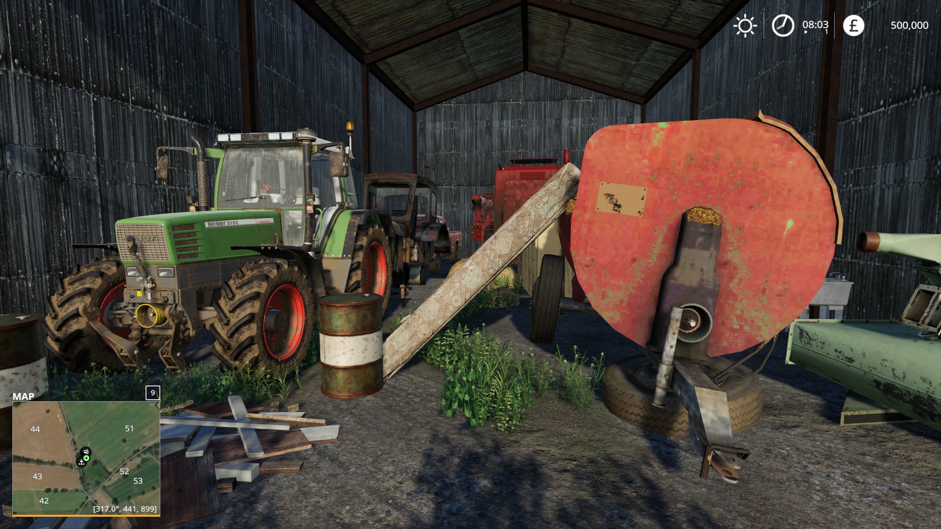 He showed up around five-to-eight with a his son and a labourer. Initially he glumly surveyed the mix of general rubbish and the carcasses of long-dead farming machines. “There’s more than I thought you said?” – angling to get more money for the clearance. “There’s a lot of scrap metal there,” I pointed out “So you should make good on your time.” He shook his head again and fished out a phone to call in a couple more labourers who were waiting with the truck in the lane outside. Once started, it took the seven of us couple of hours to shift out most of the junk. The old muck-spreader still rolled, albeit with a particularly shrill squeak from one of the bearings. Most of the other stuff could easily be carried by two people. There were some metal beams in the side lean-to. The Junkman’s face broke into a smile – “Now those are really good!” he said. In the end we were left with just the tractor carcass behind the working Fendt tractor. Jon hooked up the battery booster to the Fendt and punched the button. It turned over immediately and settled into a reassuring rumble. We used it to drag the wreck out of the barn and then, with a set of rollers that the junkman had brought, slowly pulled it round to the road. It took a lot of manoeuvring to drag it onto his trailer but once it was tied down we had finally finished and said our farewells as he went on his way.