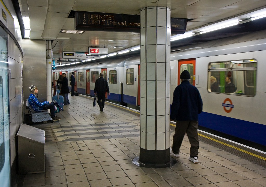 Below ground at Monument station and a District Line Sub-Surface train to Upminster is just leaving…
