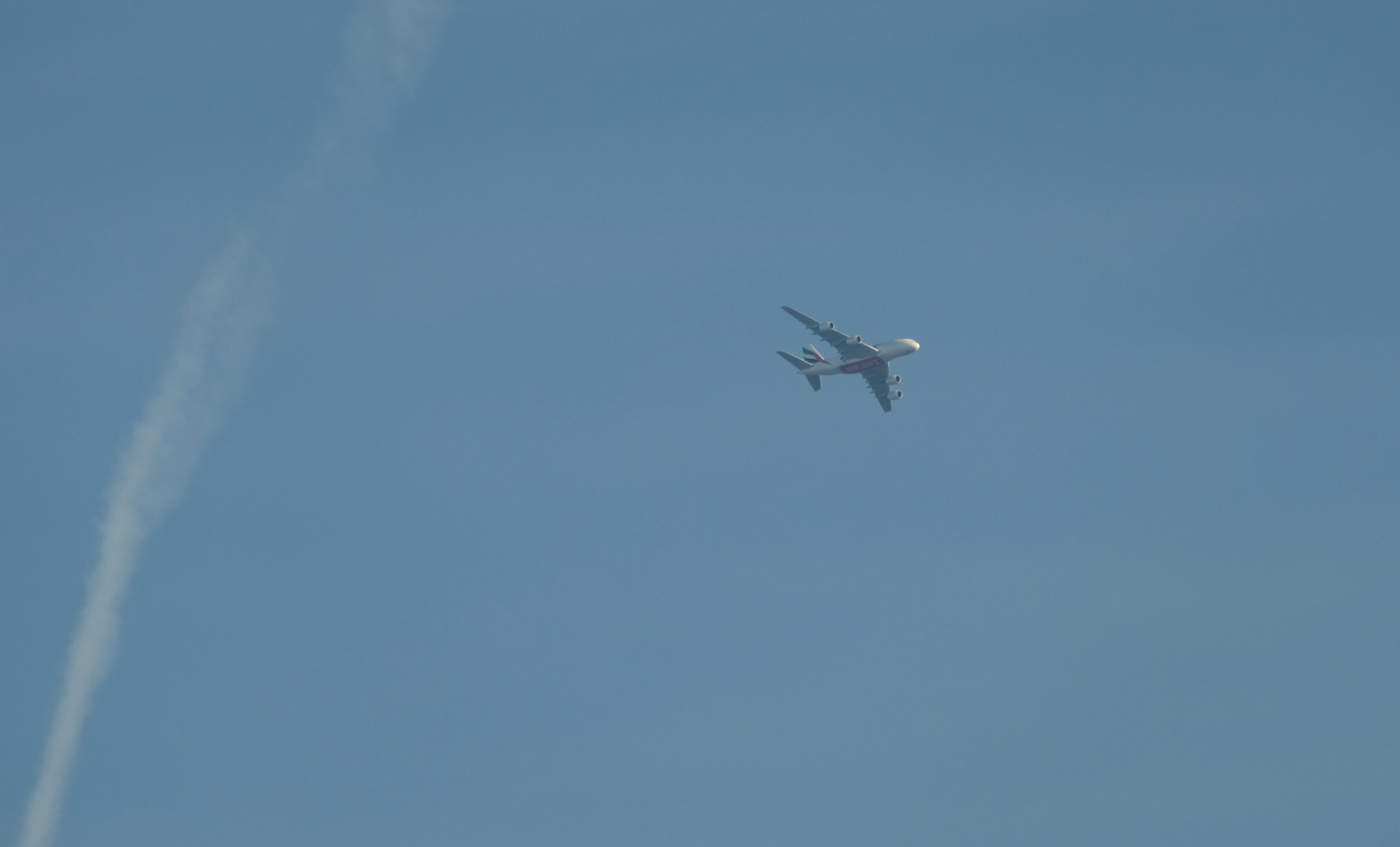 …I estimate it’s overhead Chigwell – that’s over 10 miles from me and gives some idea of the size of these behemoths of the skies. It’s worth looking up the Airbus A380 on Wikipedia to read about the design concept and how changes in the way airlines operate have killed it. Also slowly disappearing is the Airbus A340 – once a very economic option for long haul, it too has been overtaken by the twin-jet revolution. Lufthansa was the largest operator of the type with 62. Their fleet has shrunk to 24 and the airline is upcycling one of its withdrawn aircraft as aluminium luggage tags! I was lucky enough to see D-AIGV pass high overhead just last Friday, inbound to Frankfurt from San Francisco.