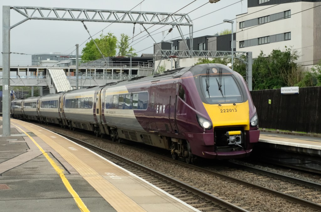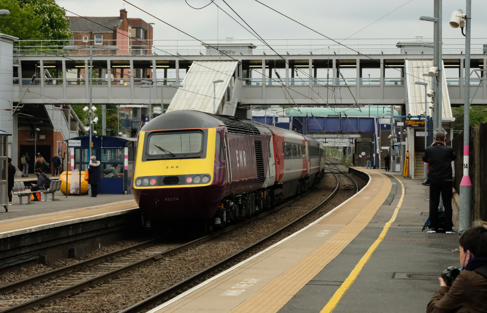 As a footnote, last Saturday saw the final services operated by the venerable HST’s on the route as these have finally been phased out. One of the Class 43’s was repainted in the EMR colours, seen here last Friday on a run into St. Pancras…