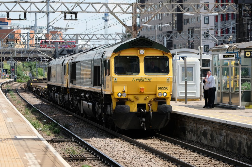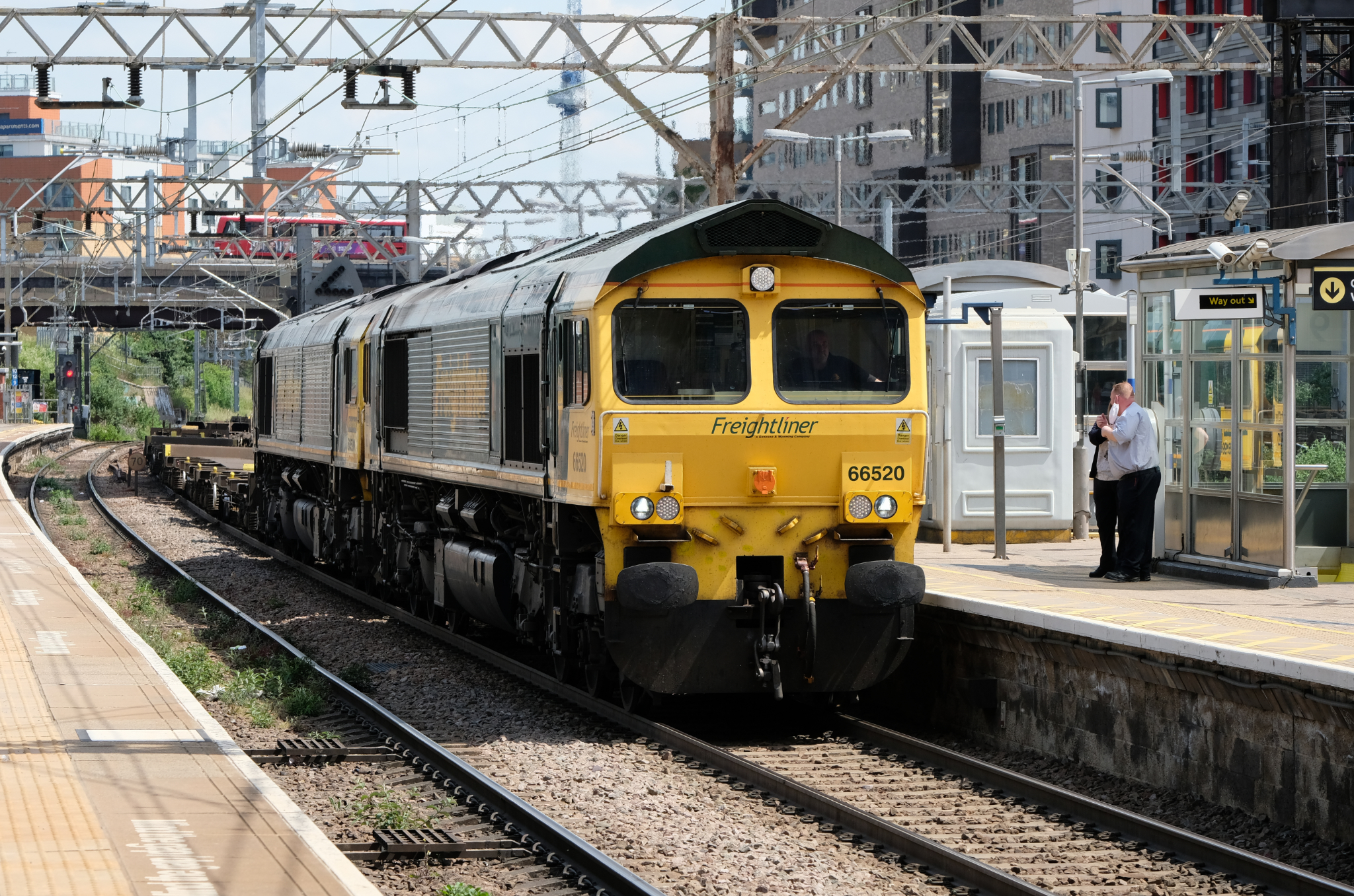…Class 379 electric unit depositing passengers before making the short return trip back to Meridian Water. And here’s a pair of Class 66 locomotives on an intermodal service from London Gateway to Leeds…