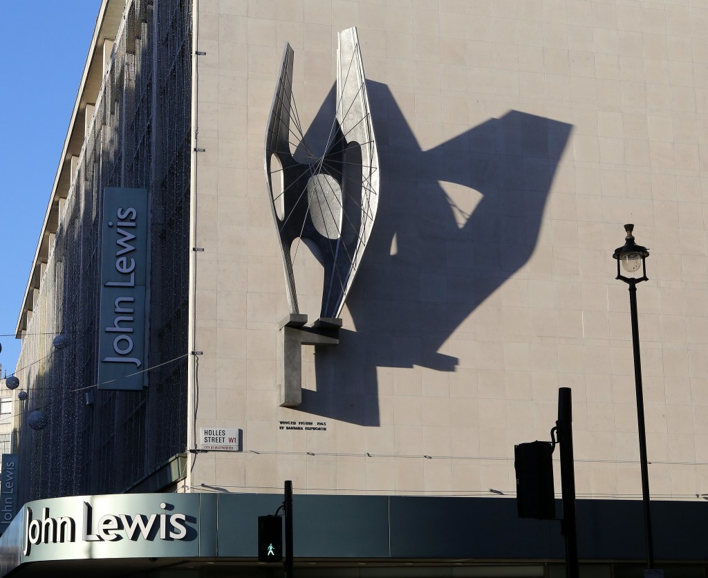 Away from the railway, but another example of a public work of art hung high above where people walk. The John Lewis store on Oxford Street has this abstract sculpture…