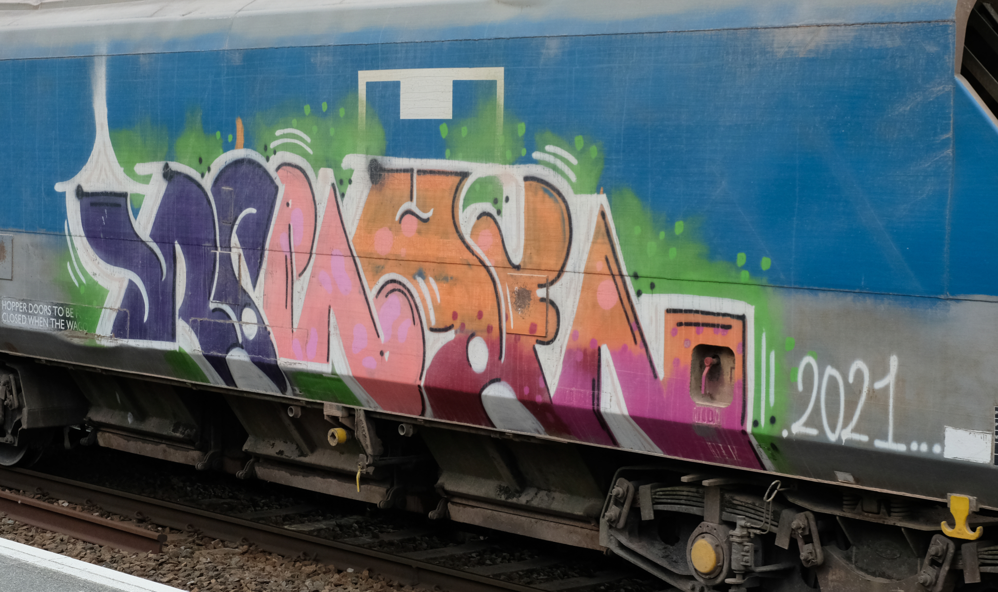 …Graffiti on a passing hopper wagon at Ealing Broadway. Graffiti will probably feature in quite a few posts for this challenge 😉