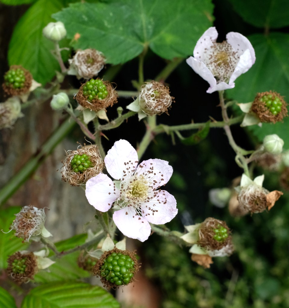 …a member of the thistle family that grows to over 6 feet tall! The Brambles are also flowering and the berries are starting to set…