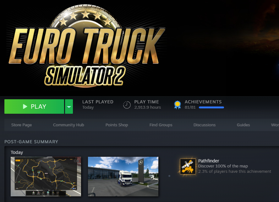 It’s Done! I have completed the Pathfinder achievement for Euro Truck Simulator 2 🙂 I estimated, based on the progress between July 4th and August 5th, that it would take me another 2 weeks to finish the final 2.25% that was outstanding. But shelving almost all my blogging to concentrate on the driving produced a good amount of additional time and I really knuckled down to getting it done!