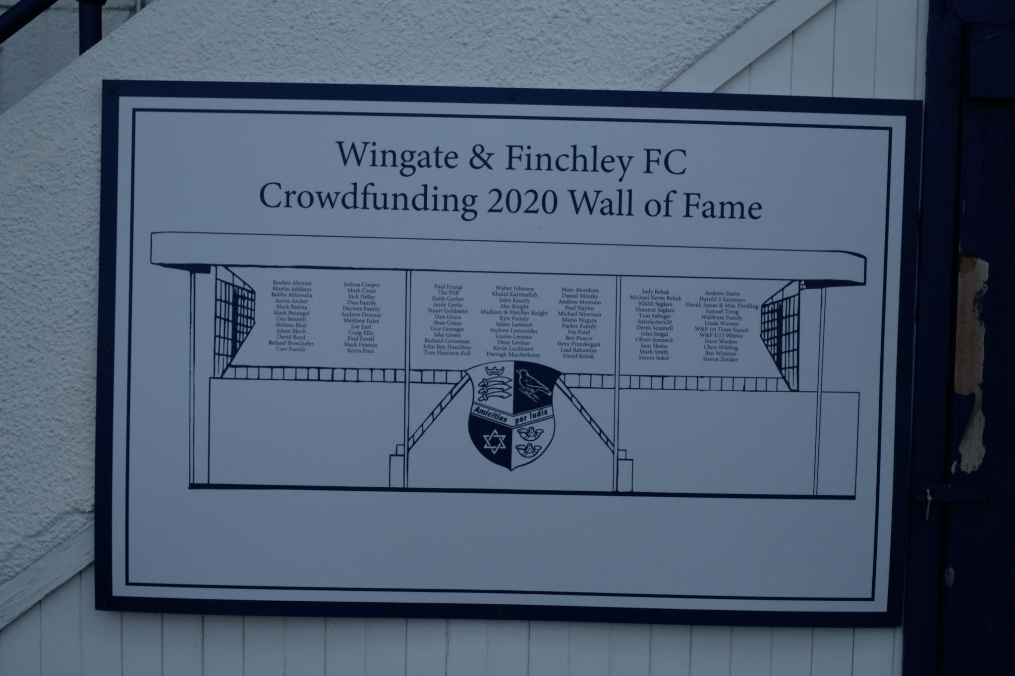 …It lists the names of all the supporters and friends of the club that donated money to help the club stay solvent during the first COVID-19 lockdown. The plaque is straight – my hand holding is not 😉