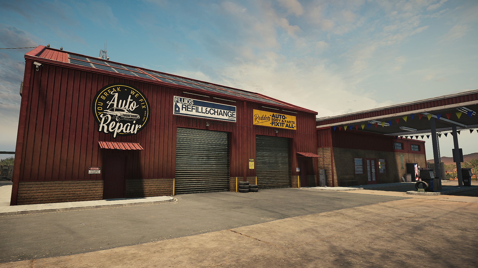 I’ll start with the graphics – Just so much better than 2018. I’m going to walk you around the garage as you find it when you start the game and you can see for yourself. Here is the roadside view…