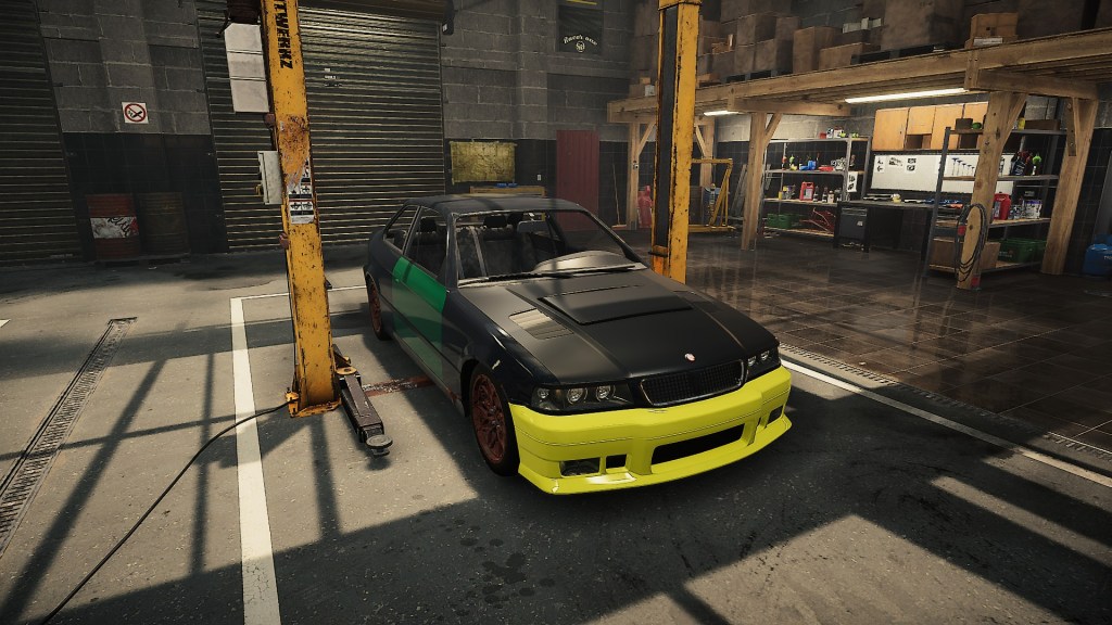 …Once you’ve got to level 6 on your renovation skills though, you can rebuild total wrecks from the junkyard. Here’s a BMW that I bought – I’ve just washed off all the muck so I can see what I’m looking at…