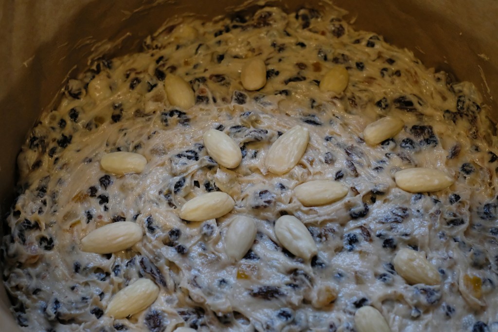 Sunday was the day to bake. Last year we had Christmas Cake baked by Epi. This year it’s Dundee Cake baked by me. Seems like a good subject for Cee’s Midweek Madness Challenge 🙂