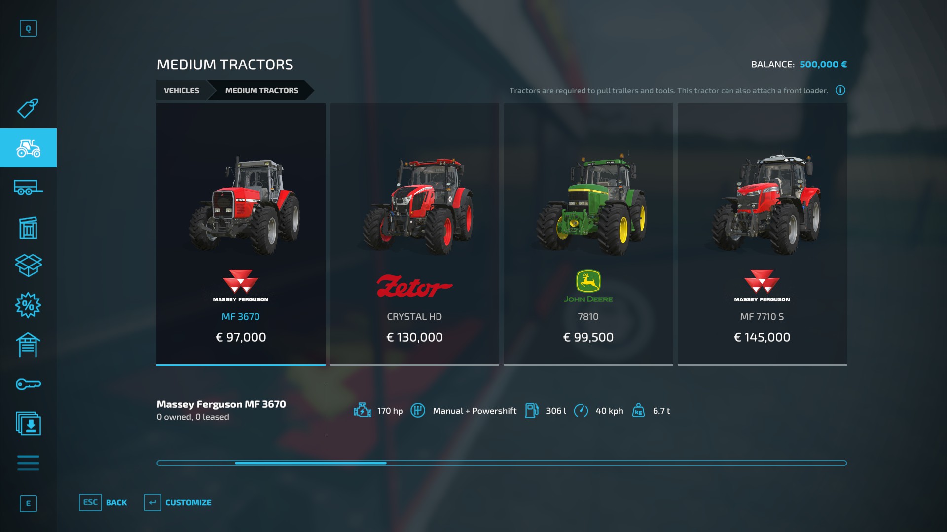 I got lucky in the second hand equipment store – a Rudolph trailer for €9.6K. That’s less than the cheapest trailer in game and it can carry double the weight!..