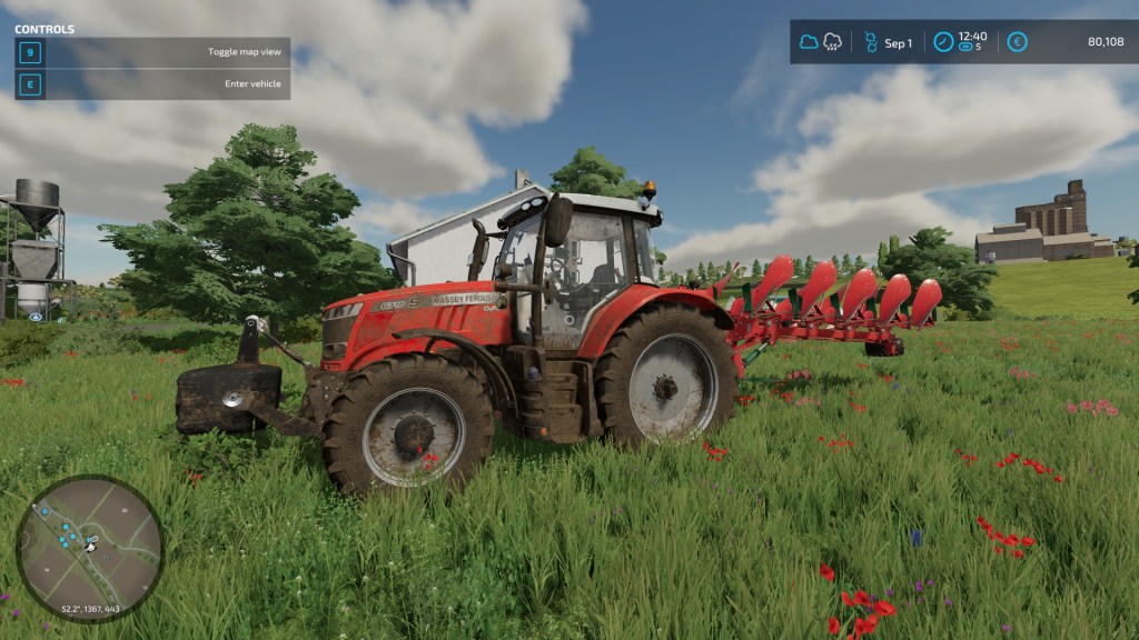 …In the background you can see some large silos – they belong to the railway company, but I can store my produce there, so I won’t have to build my own stores just yet 🙂 The Massey has now got a plough attached…