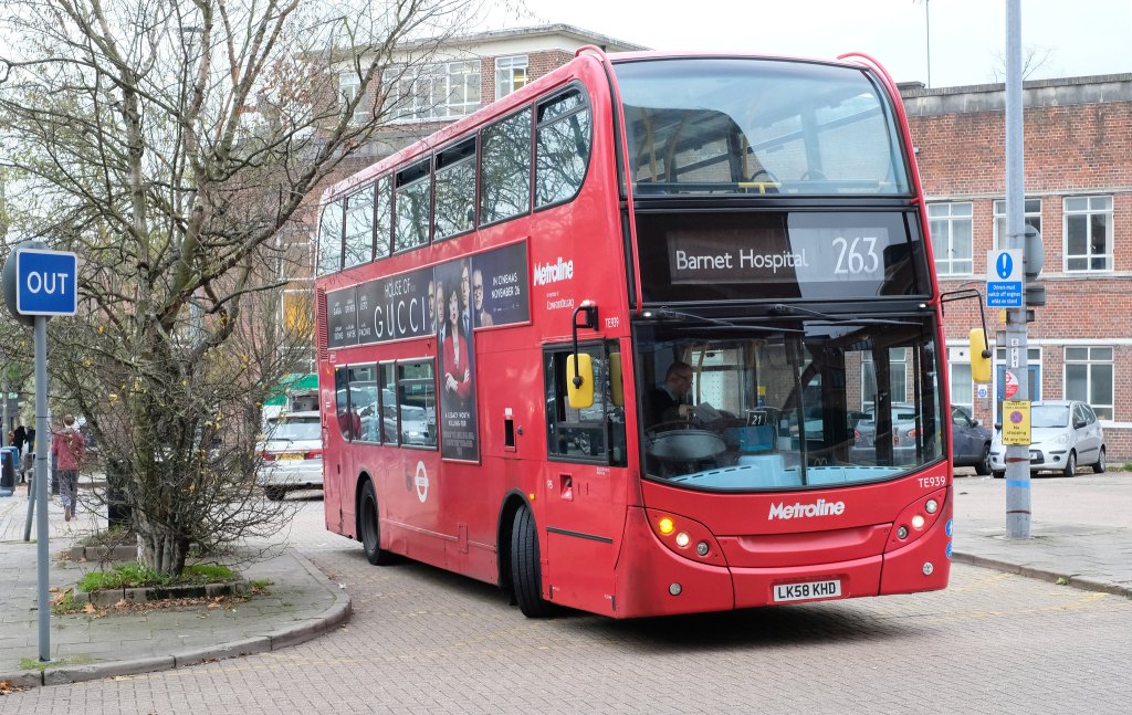 …I guess London’s buses are the reason behind the Red. Here’s Metroline’s TE939 parked in the turn-around at East Finchley station…