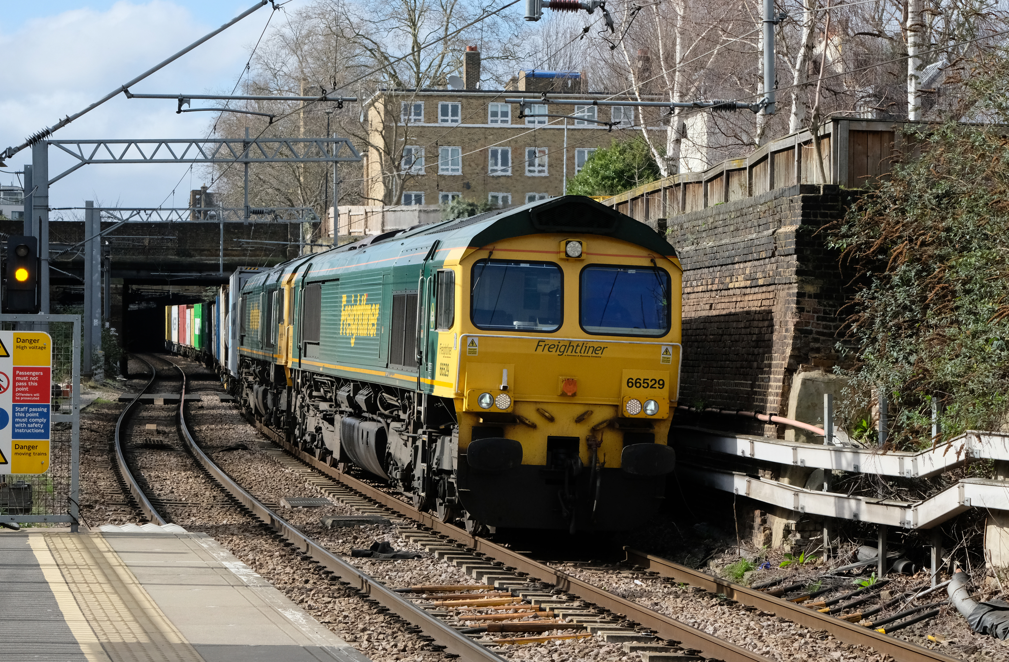 That’s at the 200mm end of the zoom and 6x magnification. Close to the opposite end of the scale at 63mm (around 95mm equivalent), here’s an Intermodal service approaching Highbury & Islington…