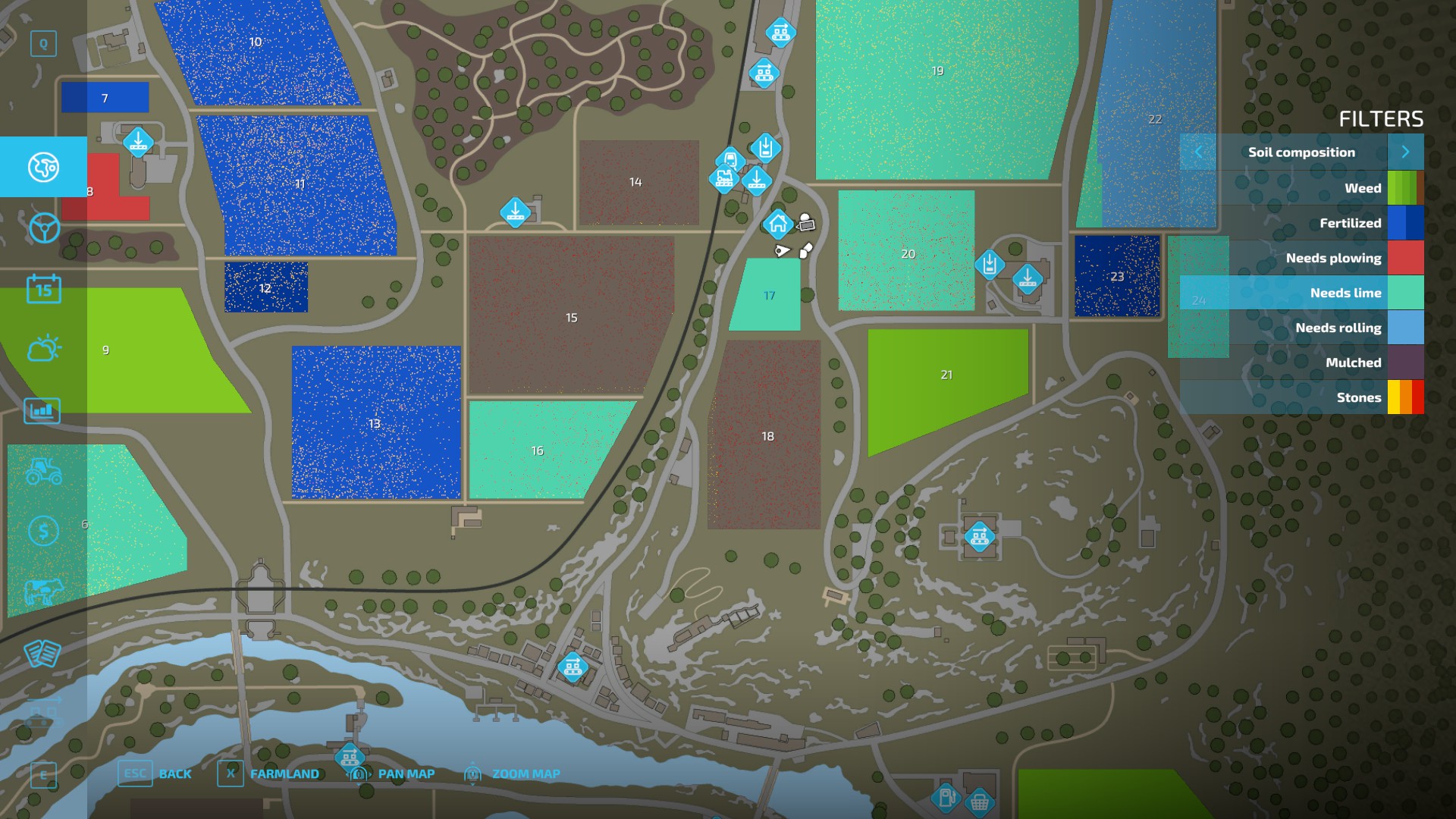 On the map you can see my field (17) coloured to indicate that lime is required. So off I went in the half-light…