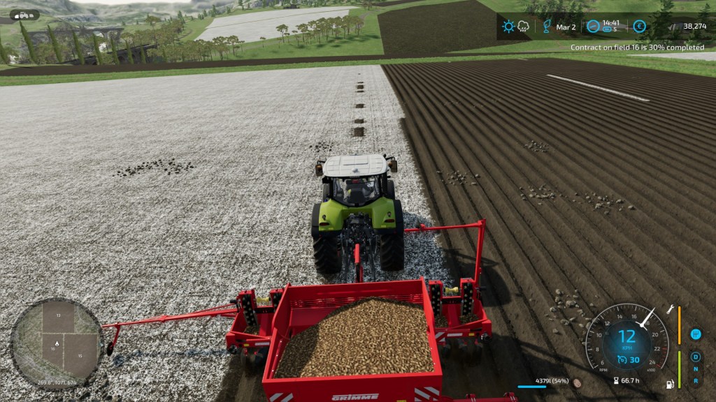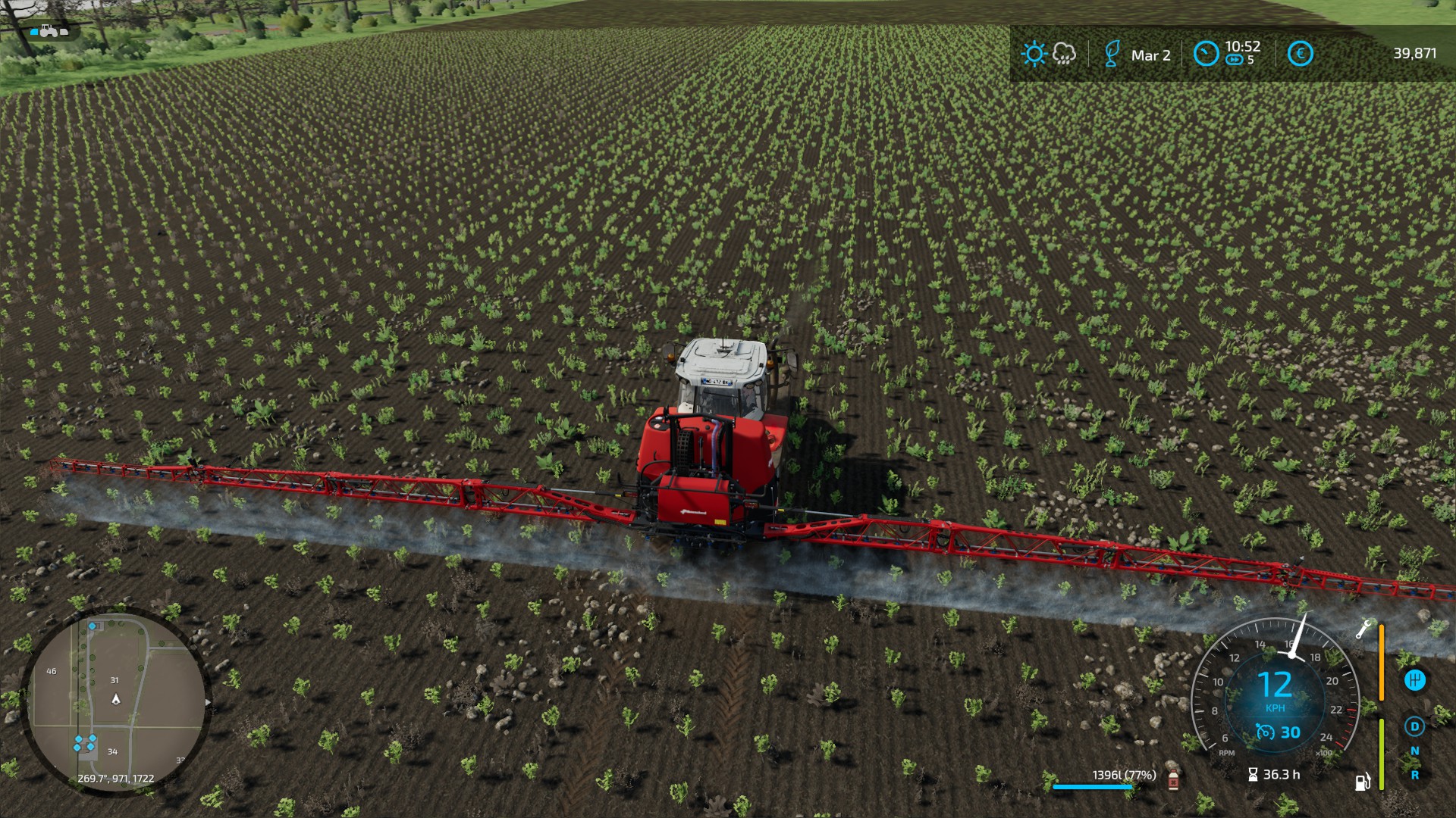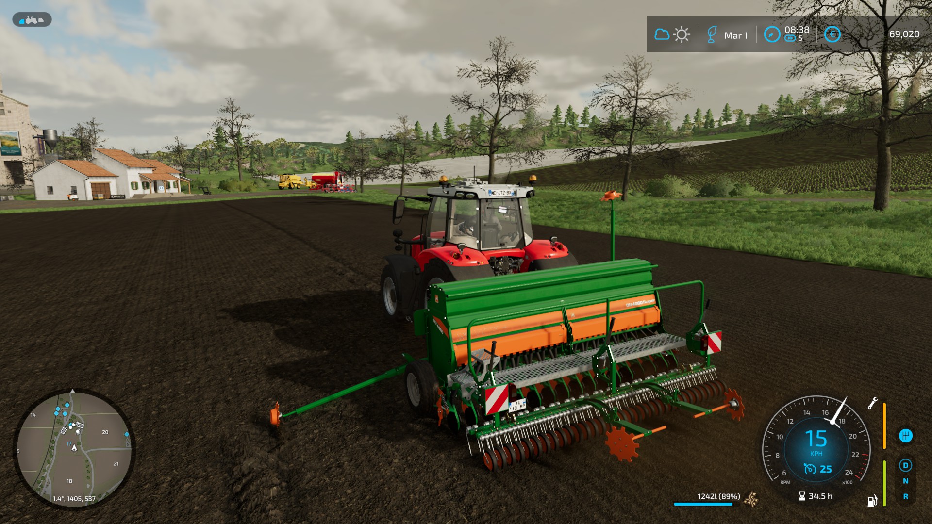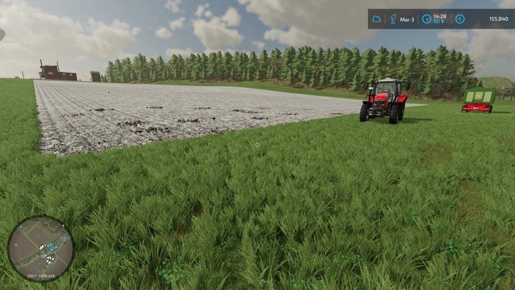 I wanted to sow Oats in my field in the first week of march and looking at the in-game weather forecast, that was the best week for sowing anyway. With as much of the preparation work done as seemed reasonable, I loaded up my Amazone seeder and set to work…