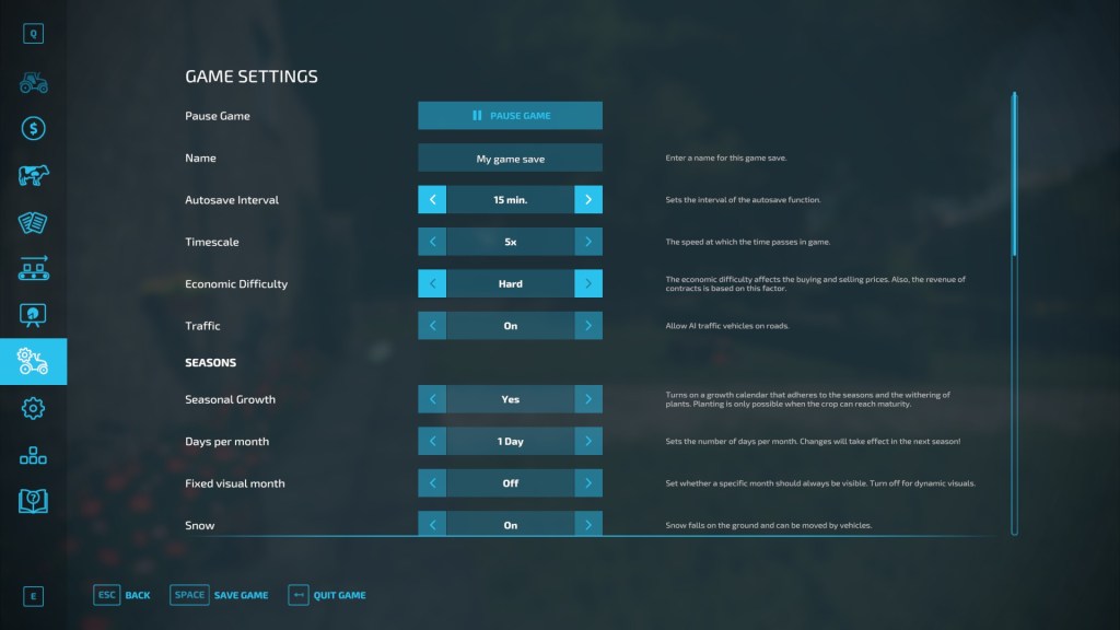 …The spreader putting in a good stint. That pushed my money in the bank up to €60K – a long way from the amount I will need to buy that next field and get a shed for my equipment. I think by now I have shown just how much of a grind playing on the Start From Scratch setting is on this map. I could continue in much the same vein as I have so far, detailing job after job through the rest of this farming year and into the next before I get to buying that next field, etc. – but it will be highly repetitive and I think that is not ideal for a blog post. How can we change that?