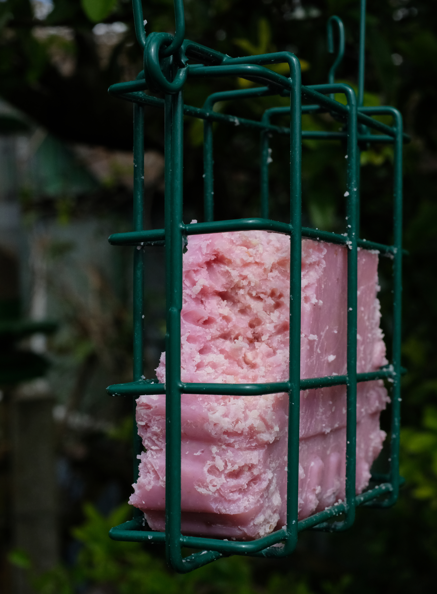 Out in the graden, we have peanut cake laced with berries and juice – it’s popular with the Starlings and here we can see their beak marks…